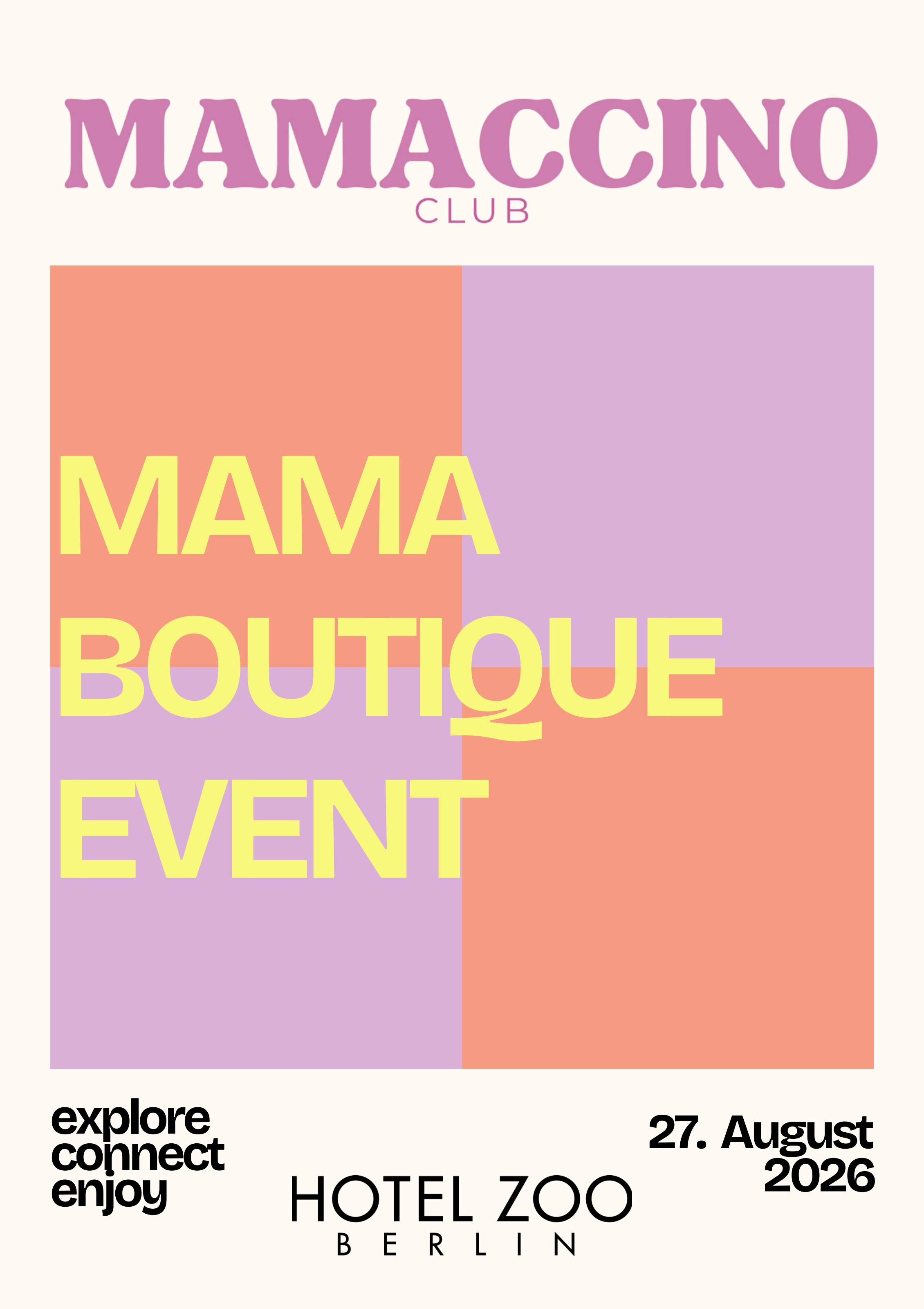 Geschaffen für eine neue Generation von Müttern, die Wert auf Qualität, Ästhetik und echte Verbindung legen. Mit nur 100 ausgewählten Teilnehmerinnen entsteht eine intime Atmosphäre — weit entfernt von anonymen Großveranstaltungen.